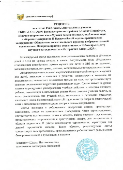 Учитель музыки - Рой Оксана Анатольевна